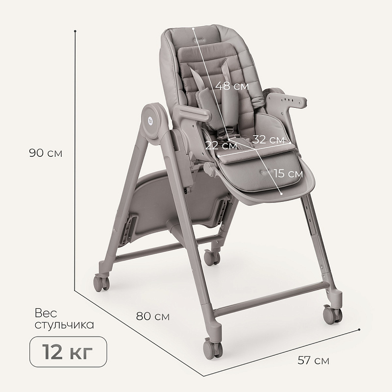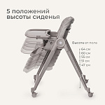 1. Индивидуальные настройки: 5 уровней высоты сиденья, 3 положения спинки (вплоть до режима «шезлонг»), регулируемая высота самой спинки и 3 положения подножки. Вы создадите идеальную позу для кормления, игр или отдыха.
