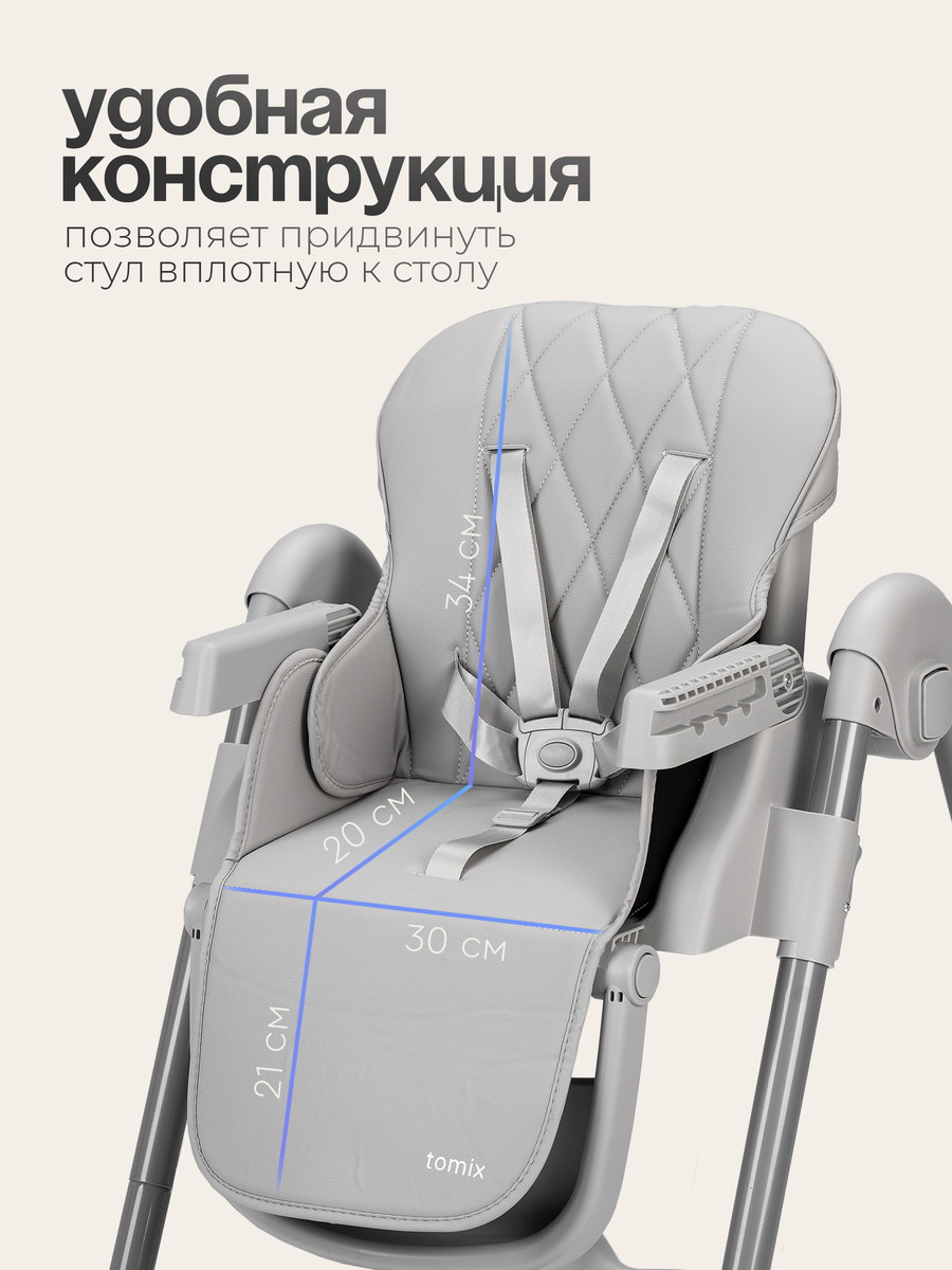 Стульчик для кормления TOMIX Lucky V2 — идеальное сочетание комфорта, безопасности и функциональности для малышей от 6 месяцев до 3 лет.