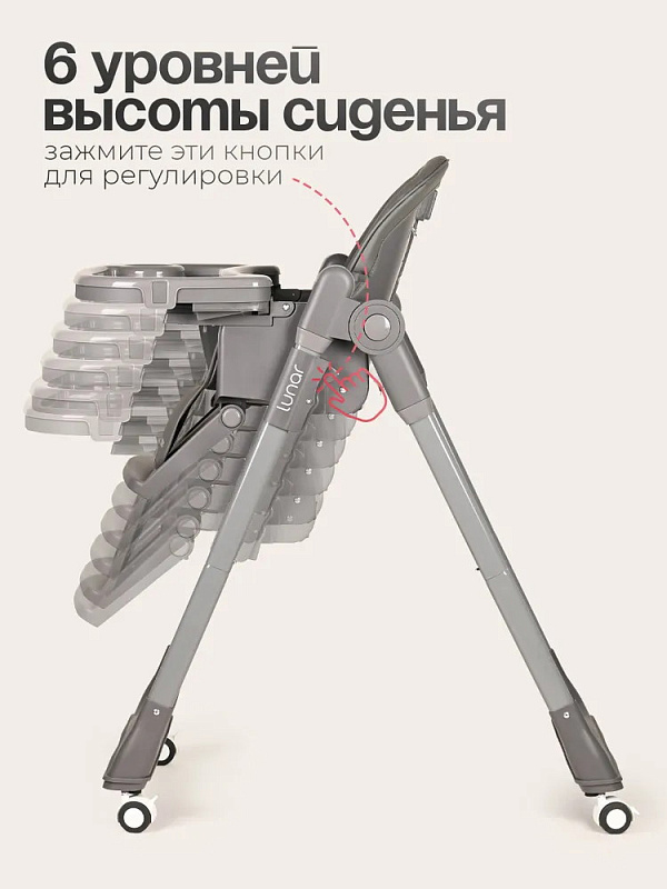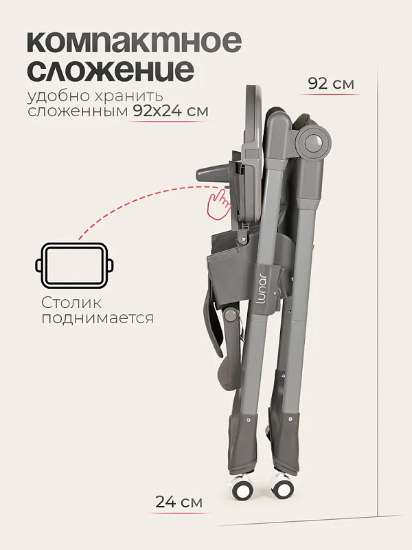 Стульчик Lunar спроектирован с учетом всех потребностей ребенка и родителей, превращая процесс кормления в удовольствие, а уход – в простую задачу.