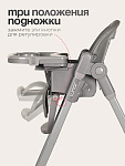 - 3 положения спинки и подножки – можно отрегулировать под возраст и рост ребенка: от первых прикормов до самостоятельного сидения;