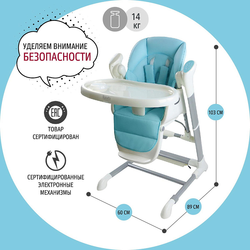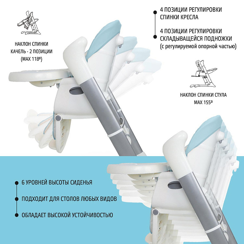 - Стульчик для кормления и игр с широкими возможностями регулировки наклона спинки, высоты сидения, положения подножки.