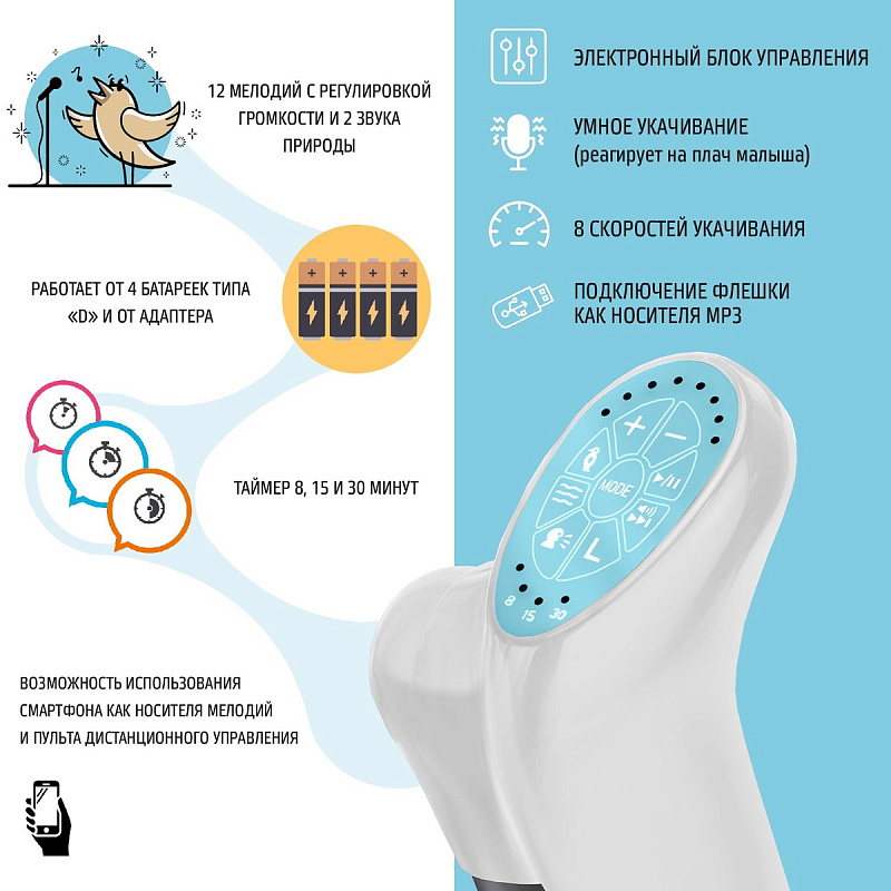 возможность использования мобильного телефона как носителя мелодий и пульта дистанционного управления