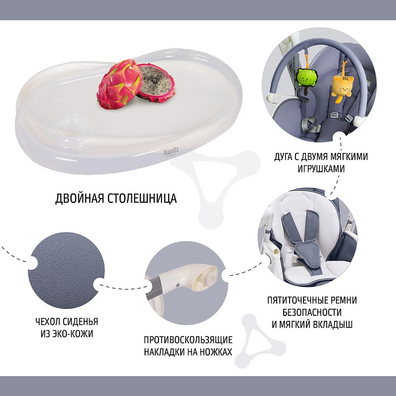 Каждый предмет, звук, прикосновение, ощущение - частичка мира ребенка, имеющая огромное значение. Универсальный предмет детской мебели – стул качели Nuovita Unico станет другом, как малышу, так и маме. Модель сочетает в себе целый ряд преимуществ: