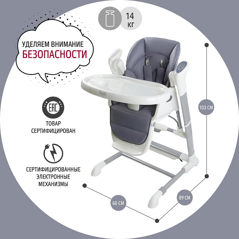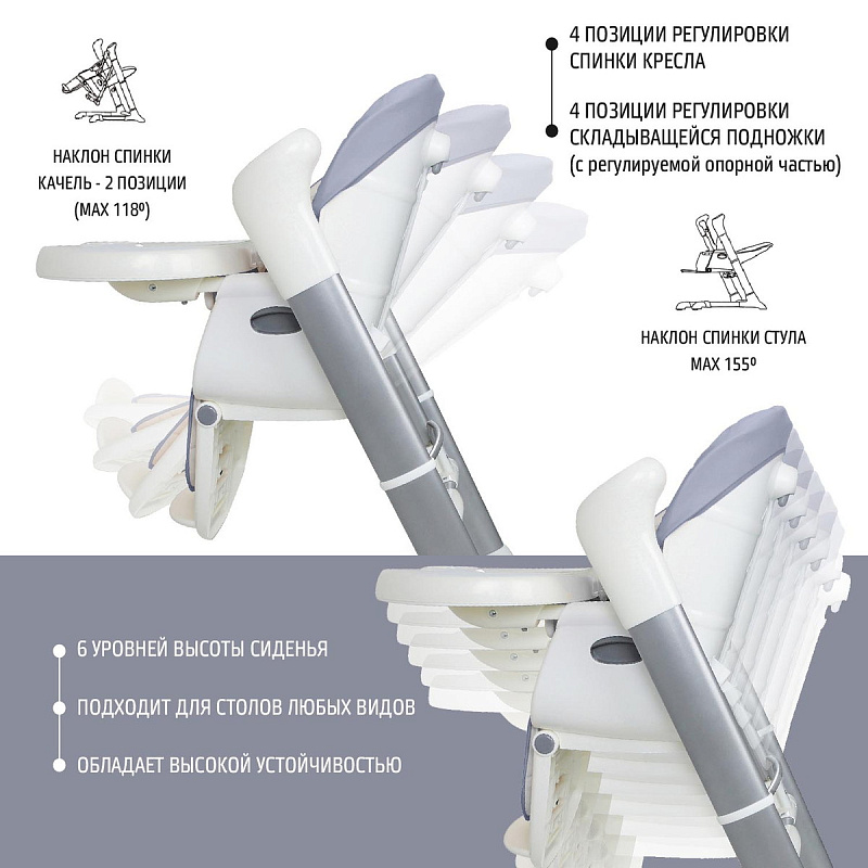 - Стульчик для кормления и игр с широкими возможностями регулировки наклона спинки, высоты сидения, положения подножки.