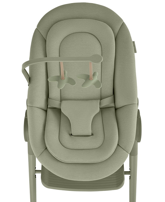 Сиденье для новорожденных оснащено подвесными игрушками с контрастными формами и цветами, которые стимулируют зрение с первых недель жизни.