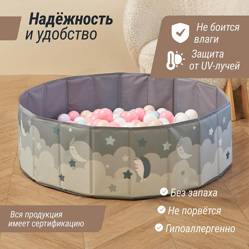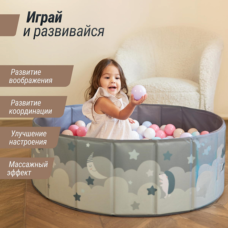 Детский сухой бассейн для шариков Unix Kids — это простая и веселая забава для малышей! Используйте его как отдельную игровую зону или для активных игр вместе с шариками. Шарики для бассейна приобретаются отдельно.