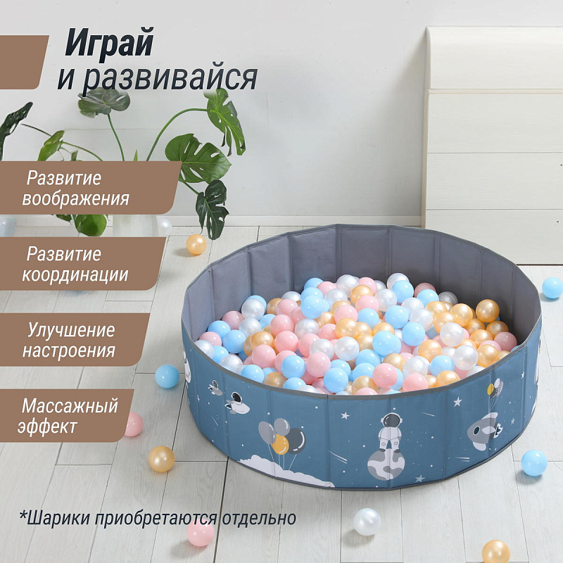 Детский сухой бассейн для шариков Unix Kids — это простая и веселая забава для малышей! Используйте его как отдельную игровую зону или для активных игр вместе с шариками. Шарики для бассейна приобретаются отдельно.