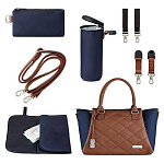 Сумка-это функциональный и модный аксессуар в одном лице. Её можно носить прямо на коляске или в качестве повседневной сумки с кожаным плечевым ремнем. Небольшие металлические ножки на дне сумки обеспечивают надежную стойку и защиту от загрязнения.