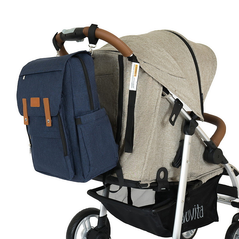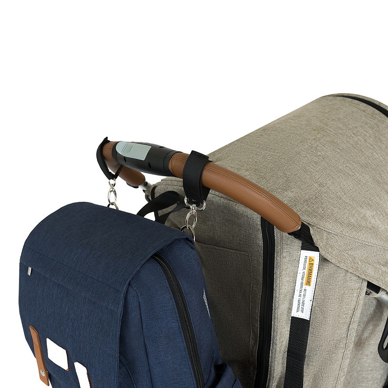 - Для крепления на ручке коляски имеются ремни с карабинами.
