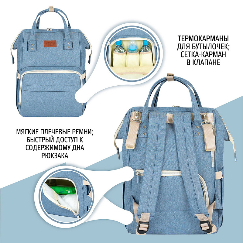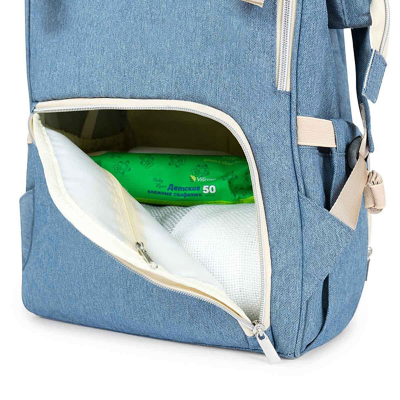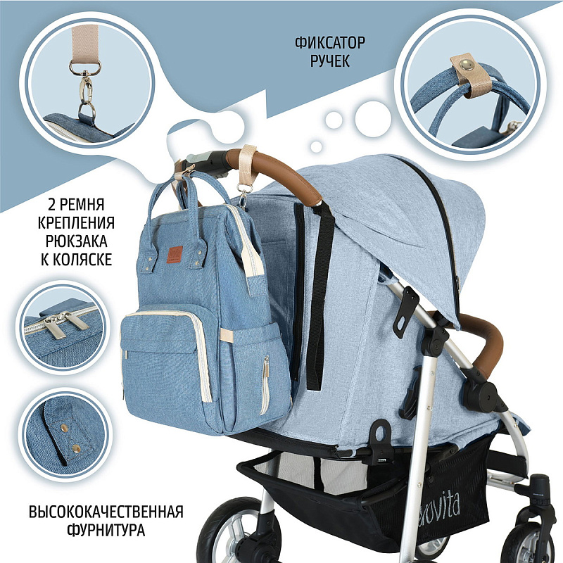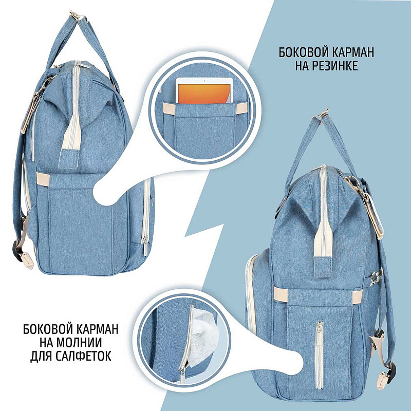 - Для бутылочек и салфеток имеются наружные карманы с быстрым доступом.