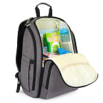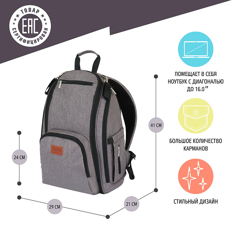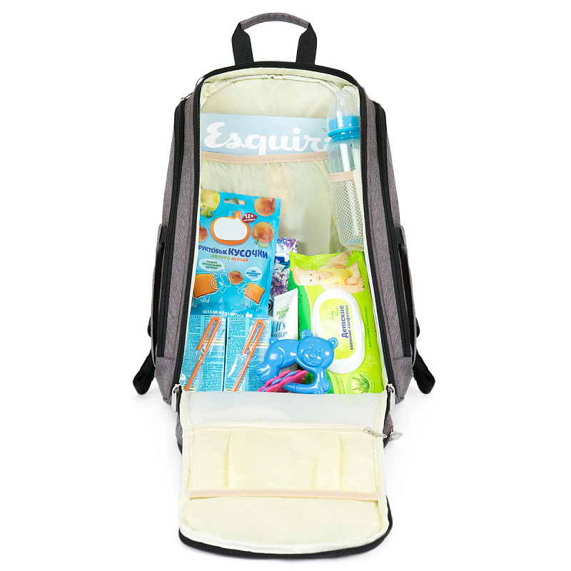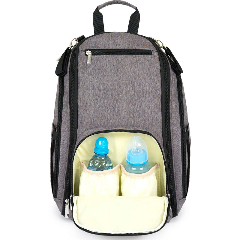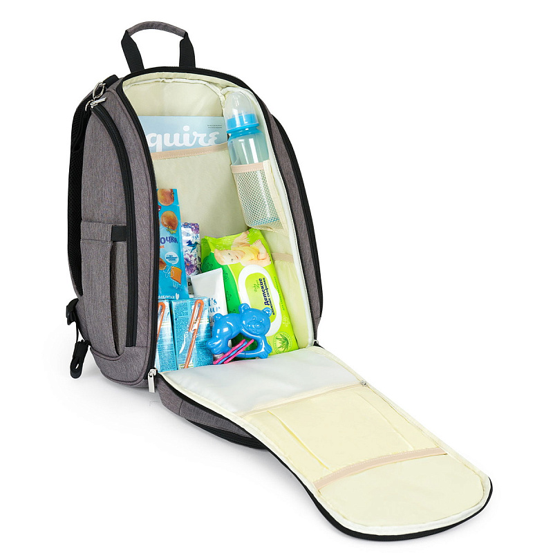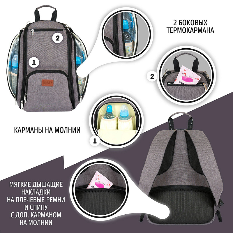Рюкзак для мамы CAPCAP VIA — элегантный вместительный органайзер, позволяющий найти нужную вещь за пару секунд. Продуманное до мелочей внутреннее пространство учитывает все потребности ребенка, множество секций с логическим размещением сбережет время и нервы родителям. Каждый предмет в рюкзаке будет на своем месте, а бутылочки с детским питанием сохранят температуру в термокарманах. Сумка рюкзак для мамы в красивой картонной упаковке идеально подходит для подарка. Для бутылочек и салфеток имеются наружные карманы с быстрым доступом. Есть потайной карман для документов, отделение для телефона, боковые карманы на резинке. Этот элегантный рюкзак для мамы имеет анатомическую форму и небольшой вес. Лямки с регулировкой и мягкими накладками снижают нагрузку на спину. Изделие выполнено из водонепроницаемого полиэстера — это прочный, плотный, устойчивый к воздействию агрессивных факторов материал, который не вырабатывает статического электричества. Для крепления на ручке коляски имеются ремни с карабинами. Дизайн унисекс подойдет для обоих родителей. Можно подобрать цвет в тон вашей коляски или выбрать практичный черный. Качество сумки рюкзака для мамы Nuovita CAPCAP VIA соответствует Техническому регламенту ТР ТС 017/2011 «О безопасности продукции легкой промышленности».