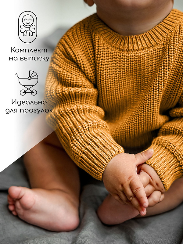 Свитер вязаный детский Amarobaby Pure Love Buddy горчичный 74