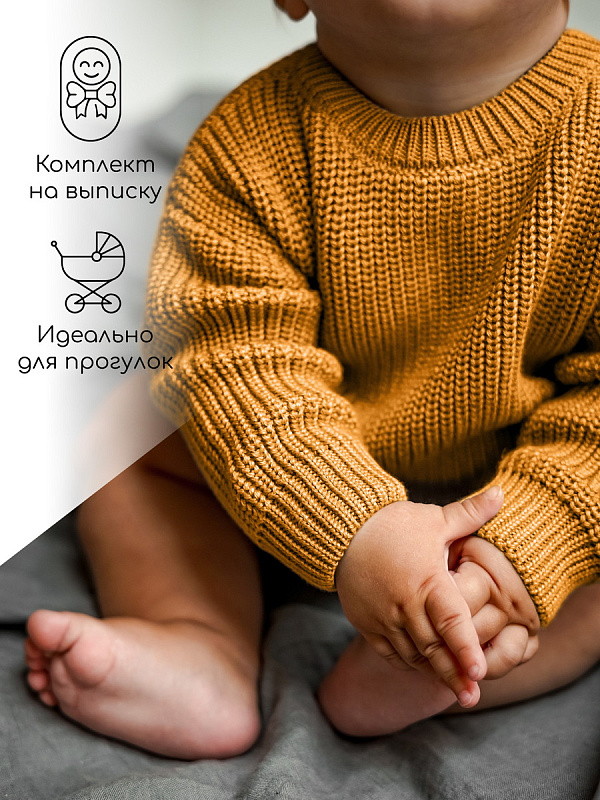Свитер вязаный детский Amarobaby Pure Love Buddy горчичный 98