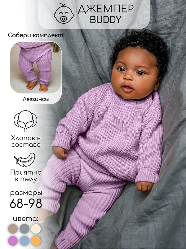 Свитер вязаный детский Amarobaby Pure Love Buddy лиловый 68