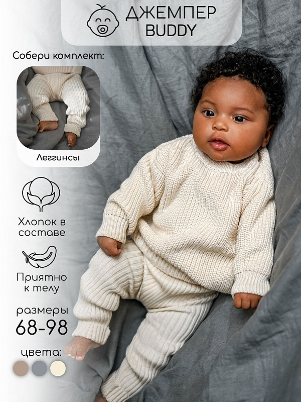 Свитер вязаный детский Amarobaby Pure Love Buddy молочный 68