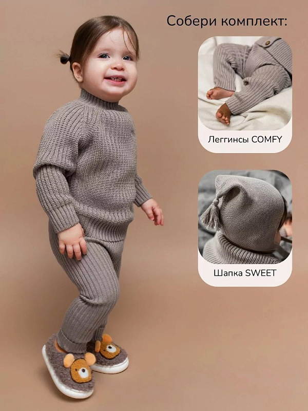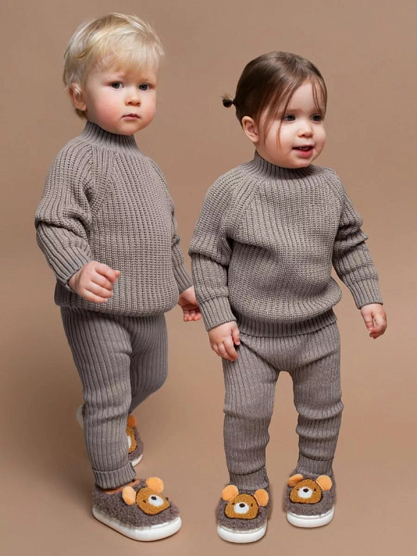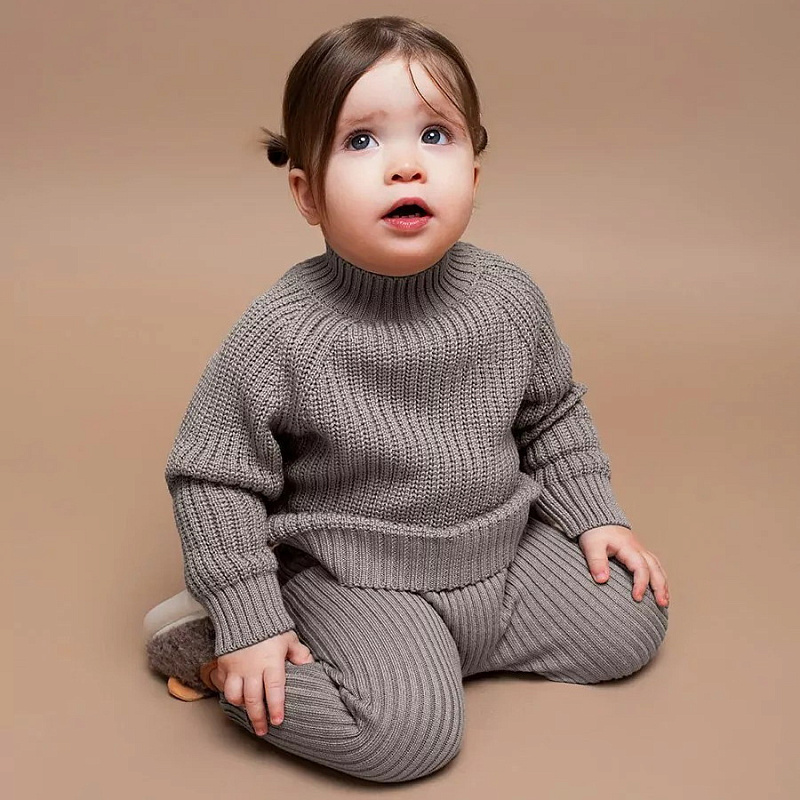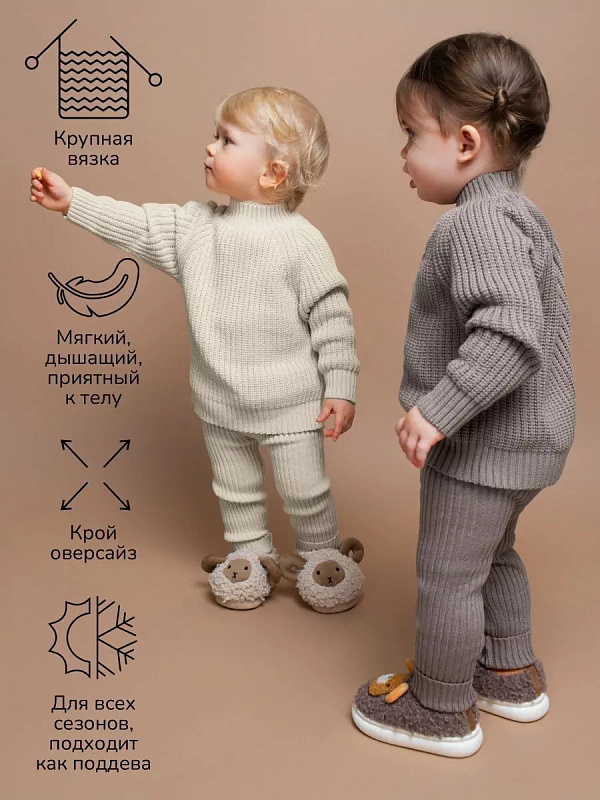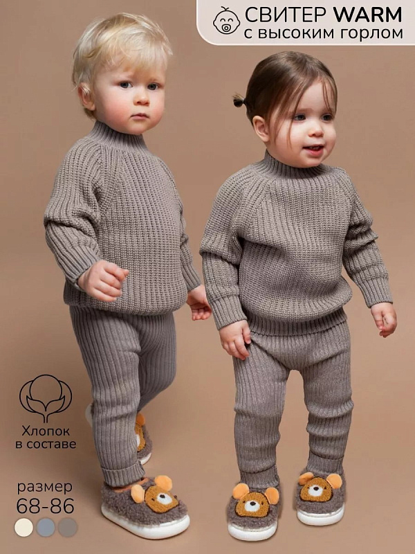 Свитер вязаный детский Amarobaby Warm с высокой горловиной коричневый 92