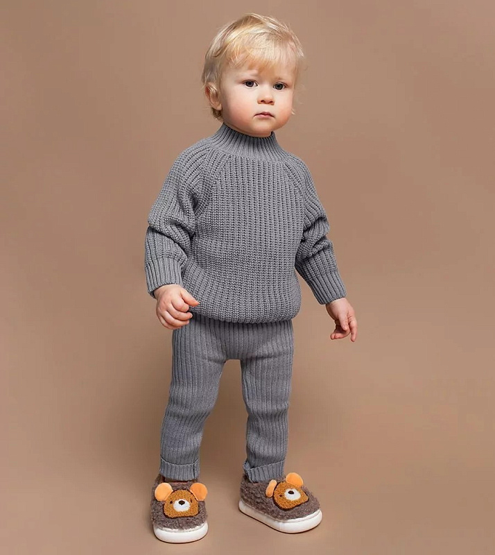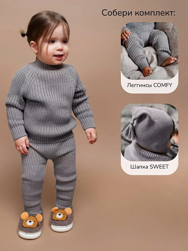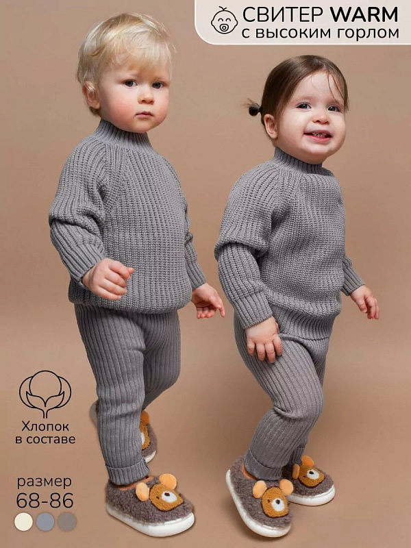 Свитер вязаный детский Amarobaby Warm с высокой горловиной серый 74