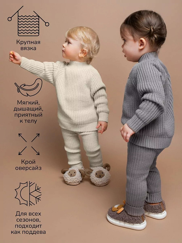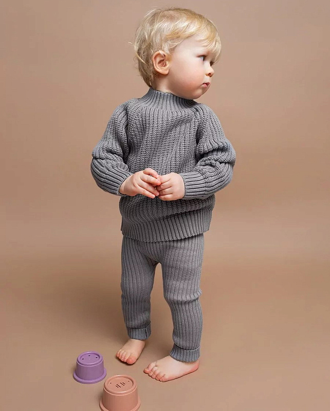 Свитер вязаный детский Amarobaby Warm с высокой горловиной серый 80
