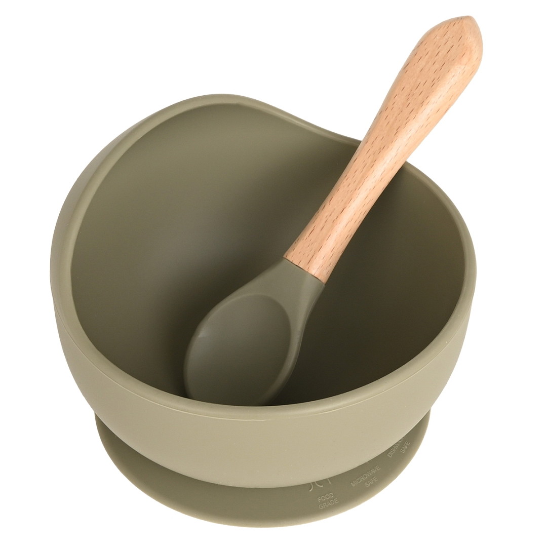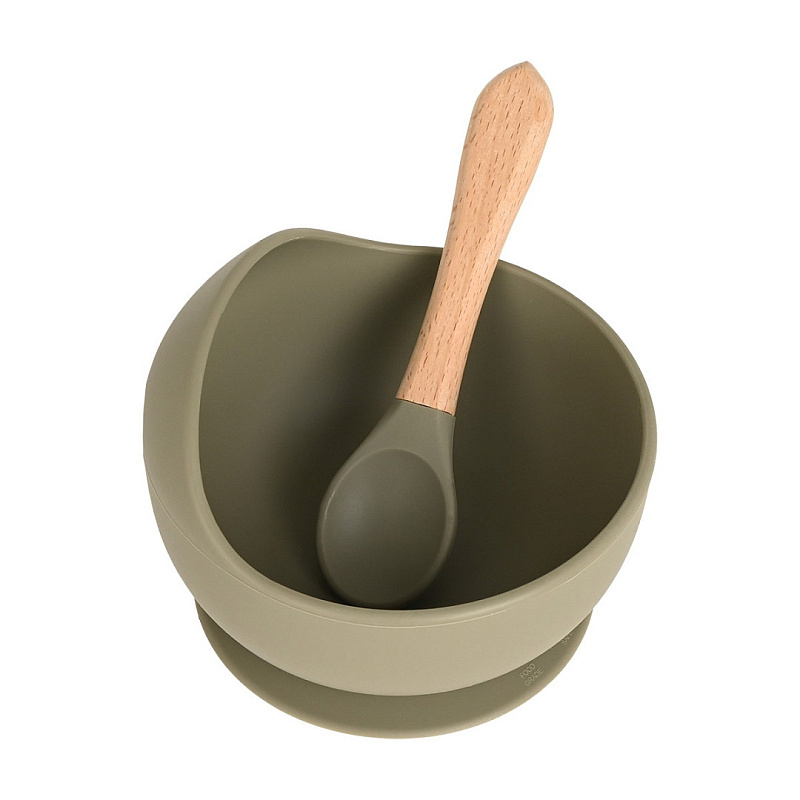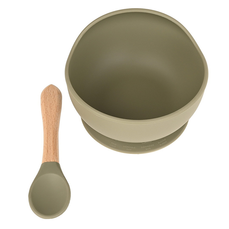 Силиконовая тарелка на присоске + ложка для прикорма. Изготовлена из 100% натурального пищевого силикона, не содержит бисфенол А (BPA free).