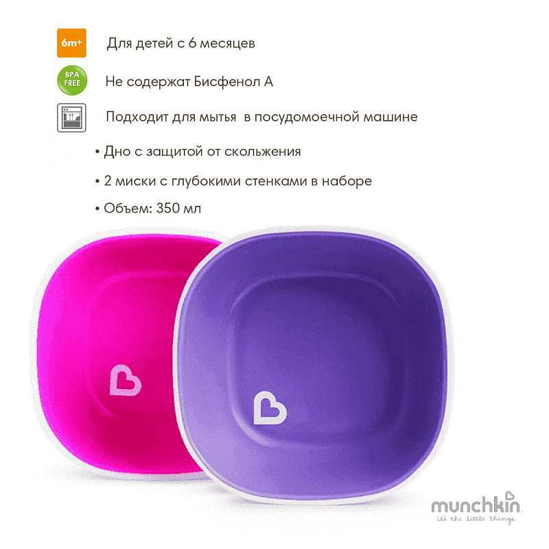 Тарелки миски детские Munchkin Splash набор 2 шт. светло-розовая, светло-фиолетоваяНет оценокХарактеристики