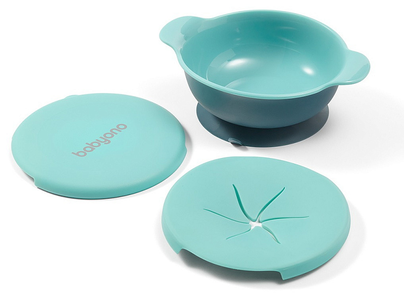 Тарелочка BabyOno на присоске с допольной крышкой для сыпучих продуктов (печенья) 300мл.