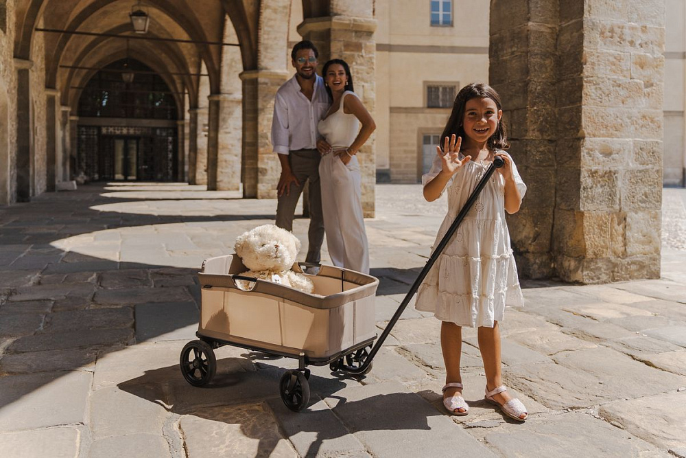 Тележка Espiro Suvi — это надежный спутник путешествий для родителей и детей! Она удобная, практичная и, безусловно, идеально подходит для транспортировки всех необходимых предметов на летние приключения. Игрушки для песочницы, любимый мишка, мяч и, конечно, что-нибудь попить — всё это обеспечит ребёнку полную гамму развлечений на пляже или в парке. А на обратном пути, тонна камней и куча палок станет совершенно другой формой игры, которая развивает креативность и воображение!