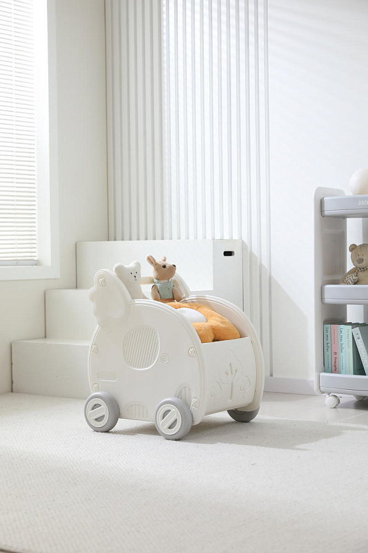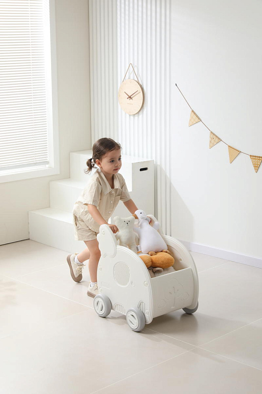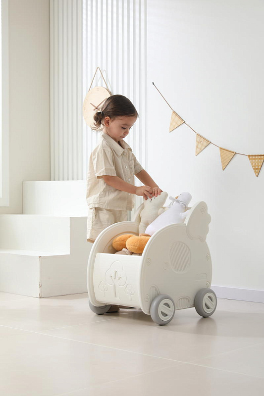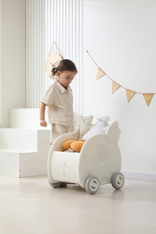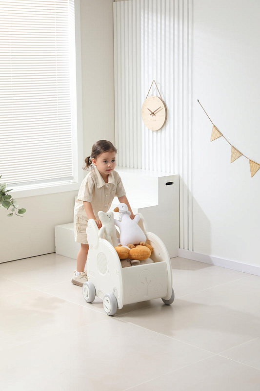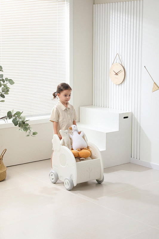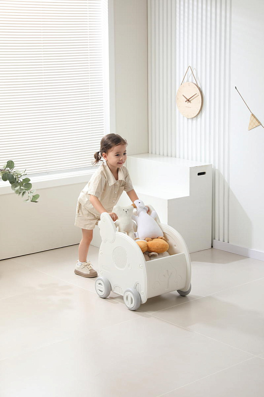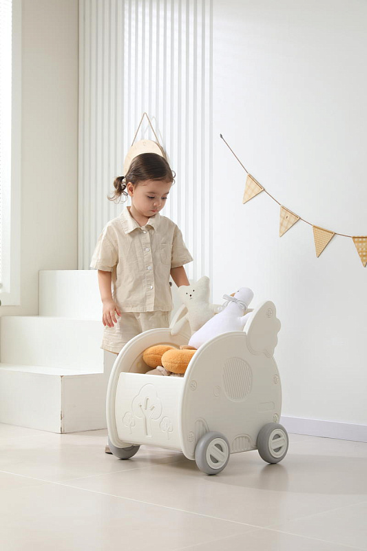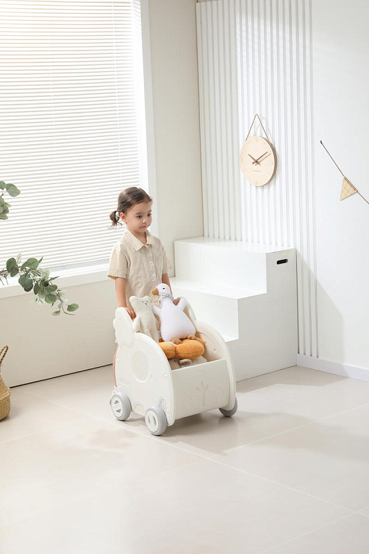 Легкая конструкция позволяет малышам легко управлять тележкой. Колеса каталки для игрушек обеспечивают плавный ход по любым поверхностям — будь то ламинат, ковровое покрытие или деревянный пол. Теперь дети смогут катать своих кукол и игрушки куда угодно!
