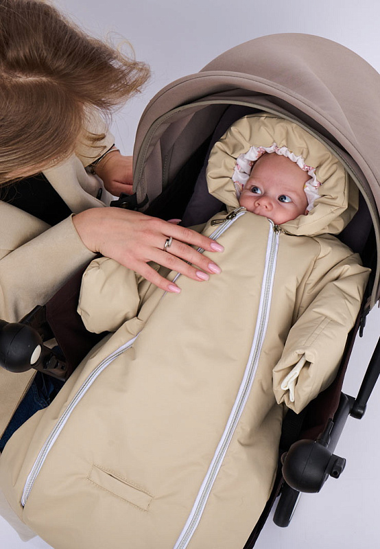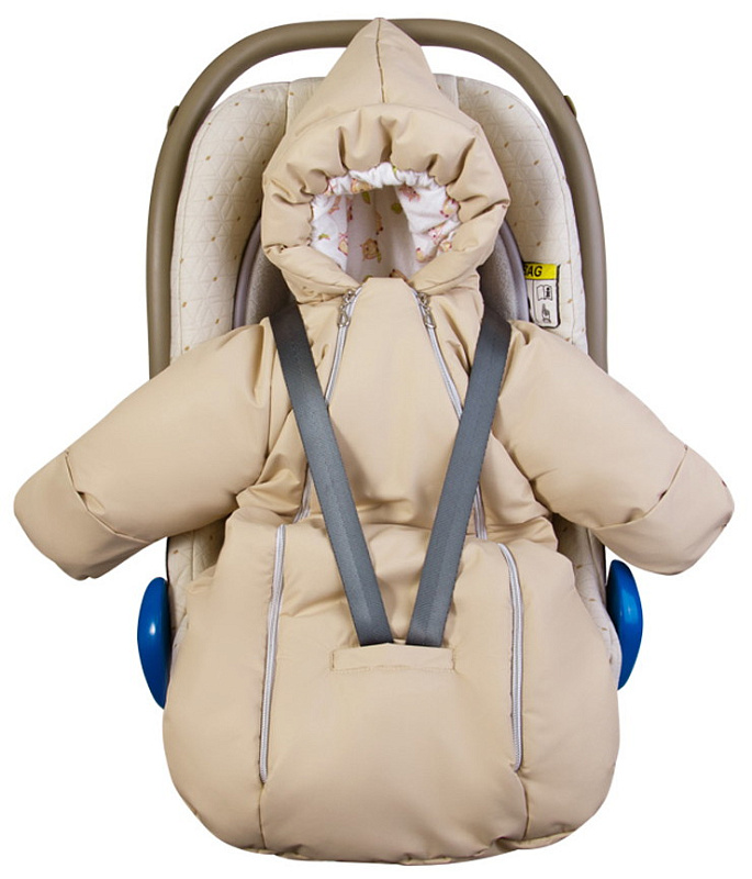 - Конверт-комбинезон можно использовать в автолюльке (имеются прорези для крепления ремнями безопасности)