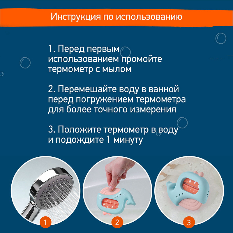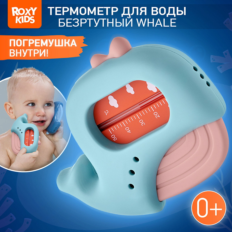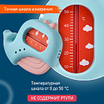 Детский термометр для воды в виде кита – многофункциональный аксессуар для купания, который точно измеряет температуру воды и обладает множеством дополнительных преимуществ! Сливные отверстия в корпусе позволяют ребенку играть с водой, что способствует развитию моторики рук и помогает ребенку улучшить координацию движений. Материал термометра обладает гладкой и приятной на ощупь текстурой, поэтому малышу комфортно держать термометр в руках. Дополнительно термометр оснащен мягкими элементами, которые можно грызть. Изделие плавает на поверхности и может оставаться в воде во время всего купания, так как не содержит ртути. Стеклянная шкала наполнена керосином и находится в пластиковом корпусе. Погремушка внутри радует малыша во время водных процедур и создает дополнительные звуковые эффекты, делая купание еще более увлекательным и интересным!