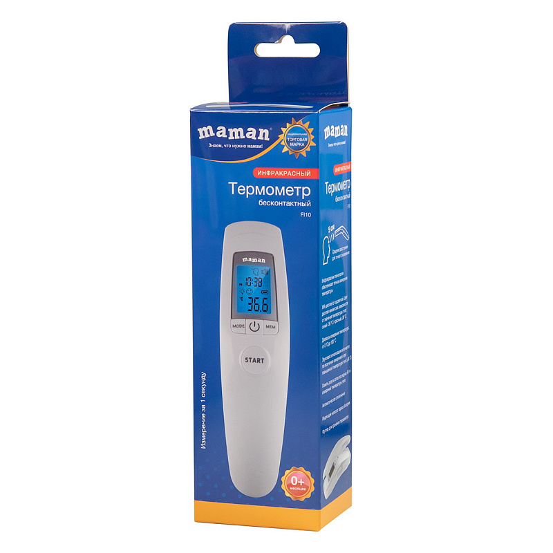 Бесконтактный инфракрасный термометр Maman FI10 предназначен для быстрого и точного измерения температуры тела, температуры детского питания, комнатной температуры, температуры поверхности и воды (в ванной).