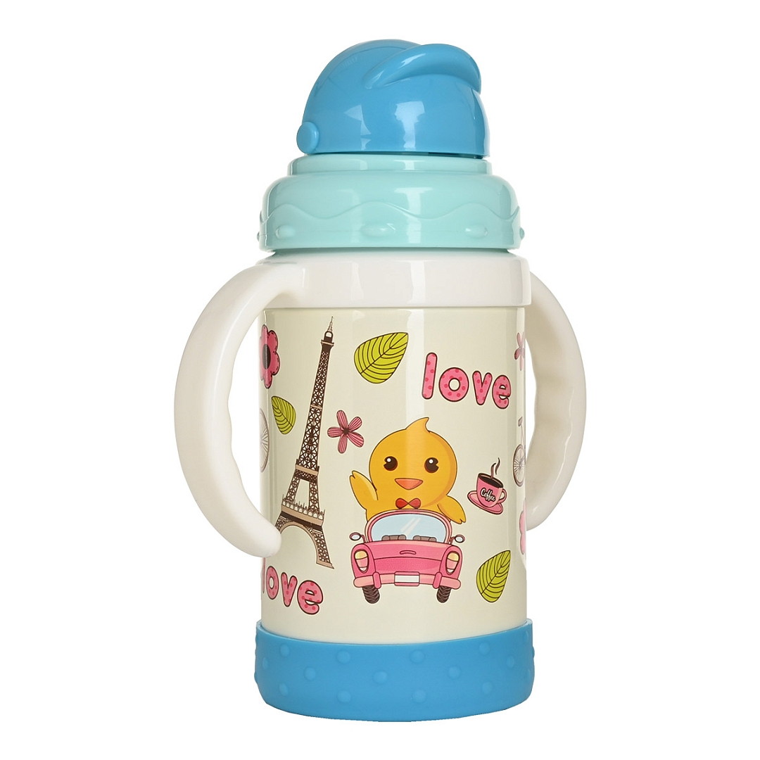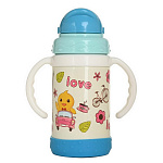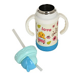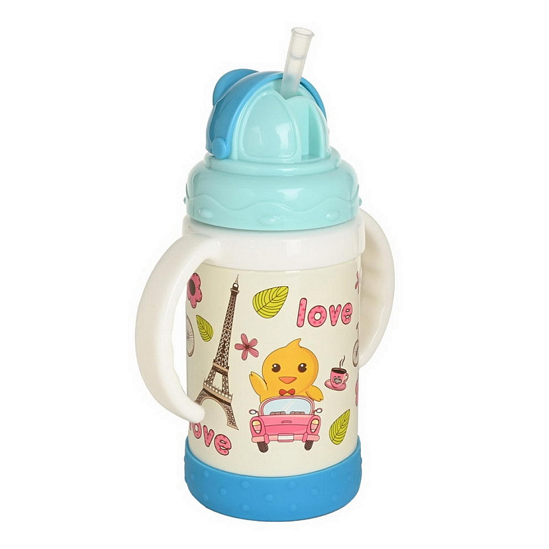 Детский термо-поильник 280 мл с силиконовой трубочкой. Корпус детской термокружки с ручкой изготовлен из высокопрочного пластика, колба из высококачественной пищевой нержавеющей стали.