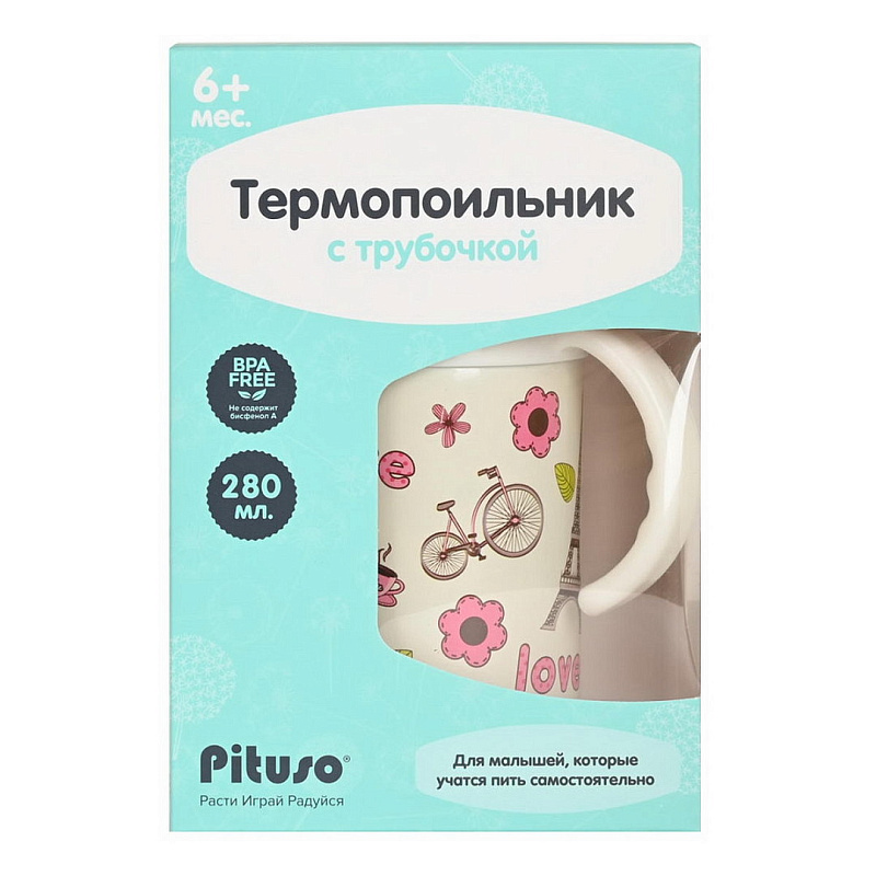 Термопоильник Pituso с трубочкой 280 мл Pink/Розовый