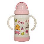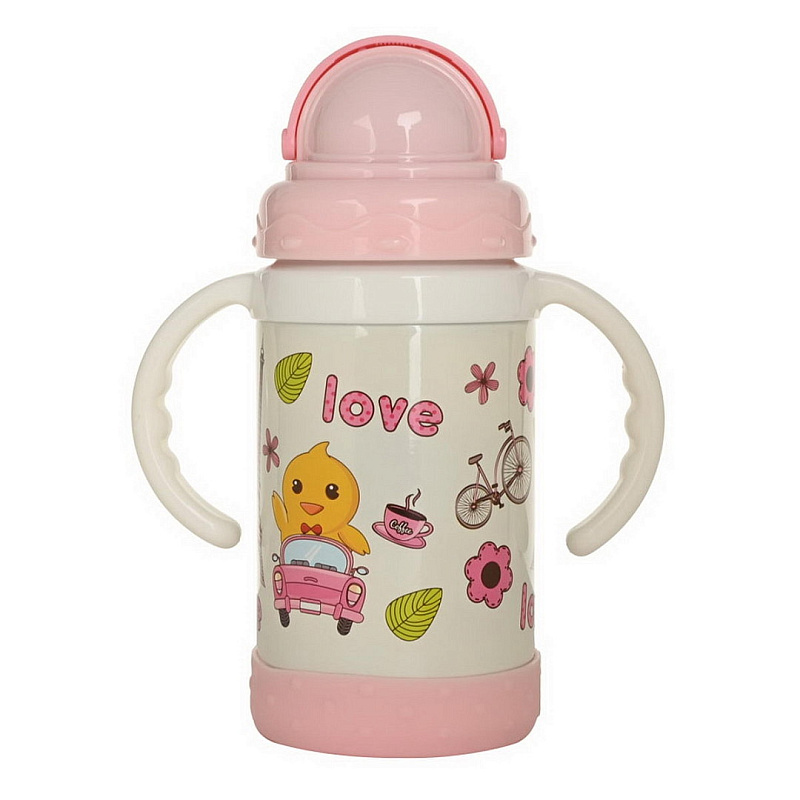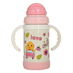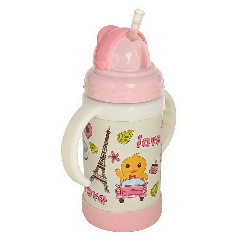 Детский термо-поильник 280 мл с силиконовой трубочкой. Корпус детской термокружки с ручкой изготовлен из высокопрочного пластика, колба из высококачественной пищевой нержавеющей стали.