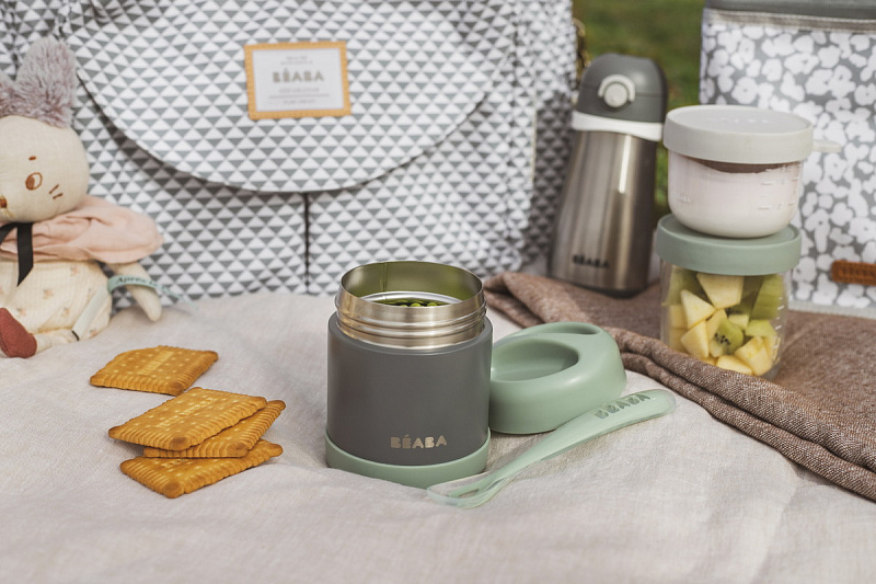 Контейнер-термос BEABA позволяет перевозить детское питание и сохранять его температуру в течение нескольких часов. Объем 300 мл оптимален для того, чтобы покормить ребенка, при этом занимает мало места в сумке для мамы или багаже при длительных поездках.