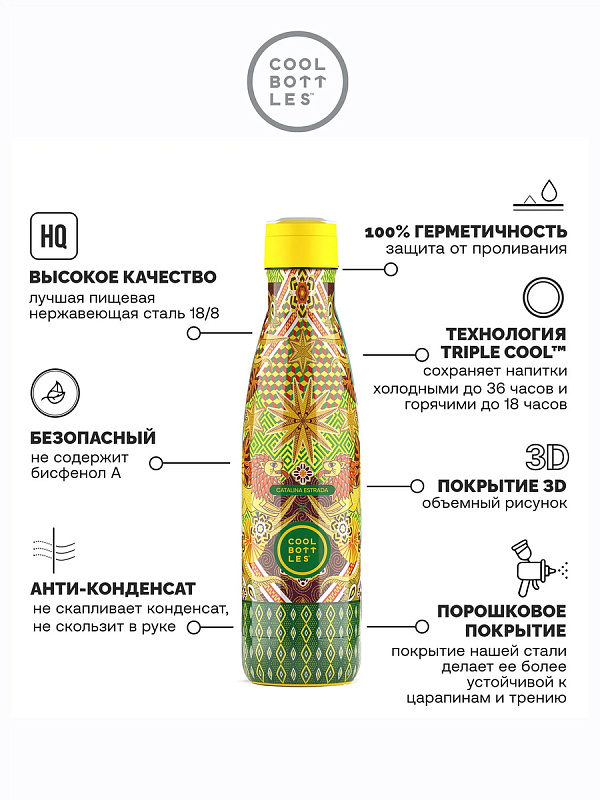 Cool Bottles предлагают дизайны, которые понравятся всем. Стильный, высококачественный и экологичный термос. Технология Triple Cool: напитки остаются холодными 36 часов и горячими 18 часов.