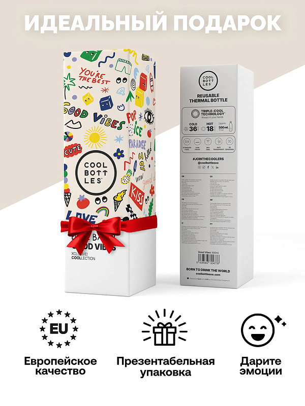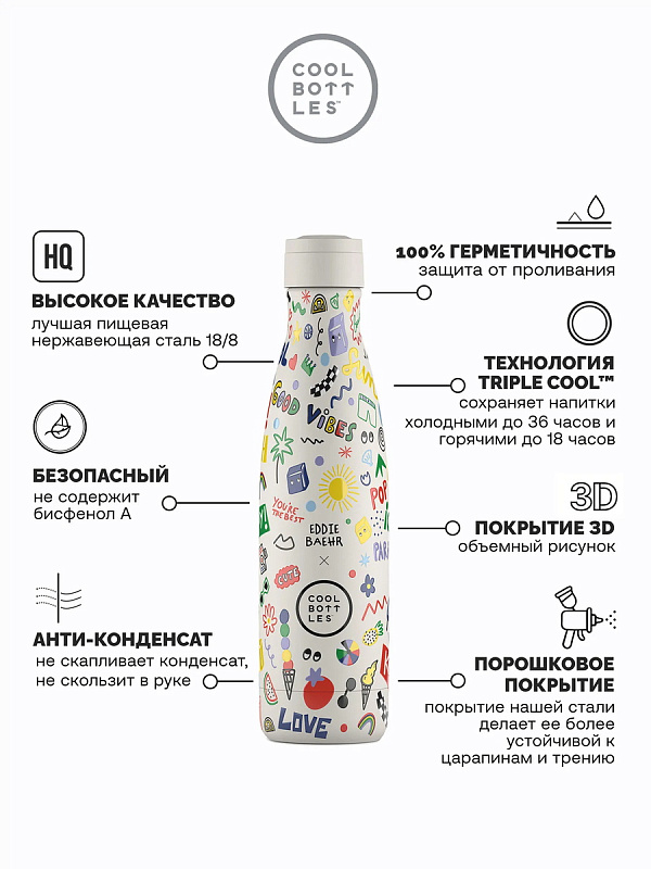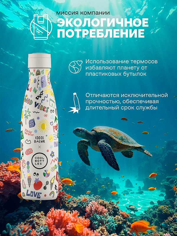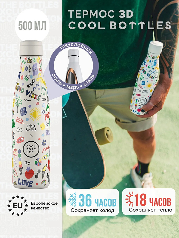 Термос–термобутылка Cool Bottles Eddie Baehr Good Vibes 500 млНет оценокХарактеристики