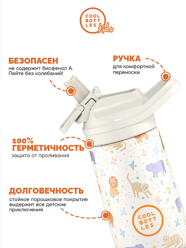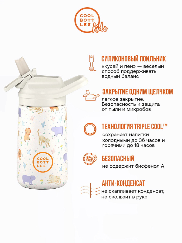 Рекомендуется малышам от 12 месяцев. Из термоса с поильником не только удобно пить воду и любимые напитки, но и быстро перейти от бутылочки с соской к использованию трубочки и обычной чашки. Cool Bottles Kiddie— это оптимальное сочетание дизайна, безопасности и функциональности для стильного поддержания водного баланса детей.