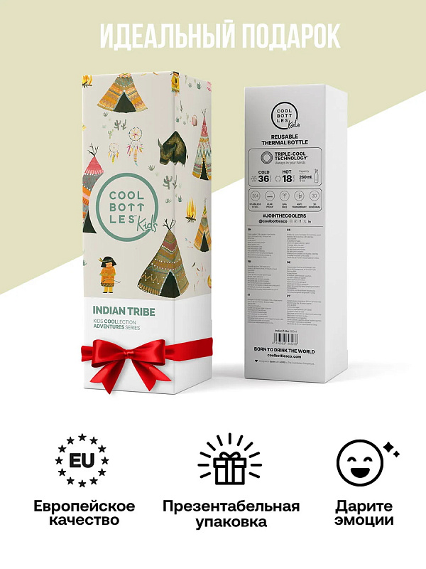 Термос–термобутылка Cool Bottles Kids серия Adventure Indian Tribe 260 млНет оценокХарактеристики