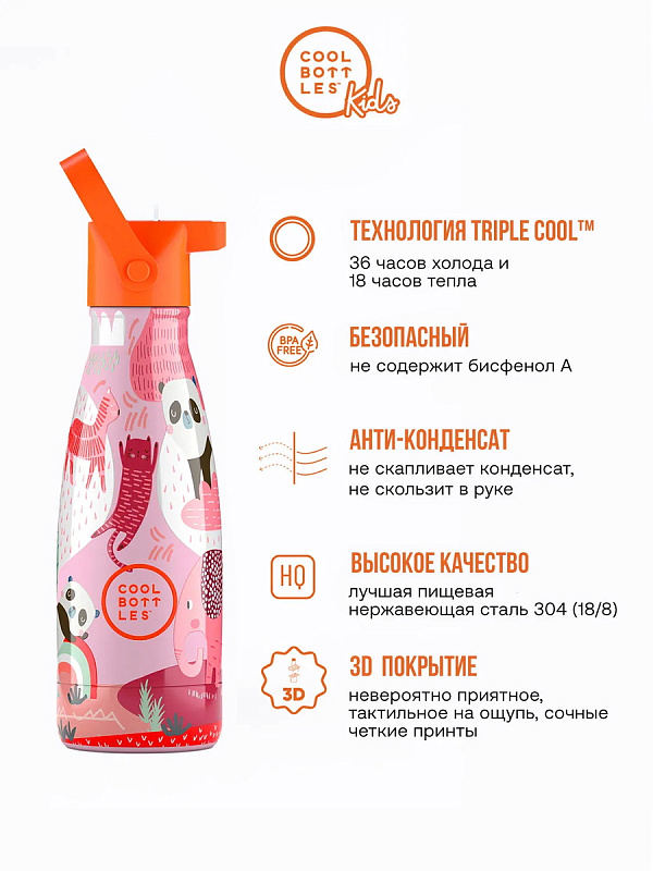 Термос–термобутылка Cool Bottles Kids серия Animals Panda Gang 260 мл