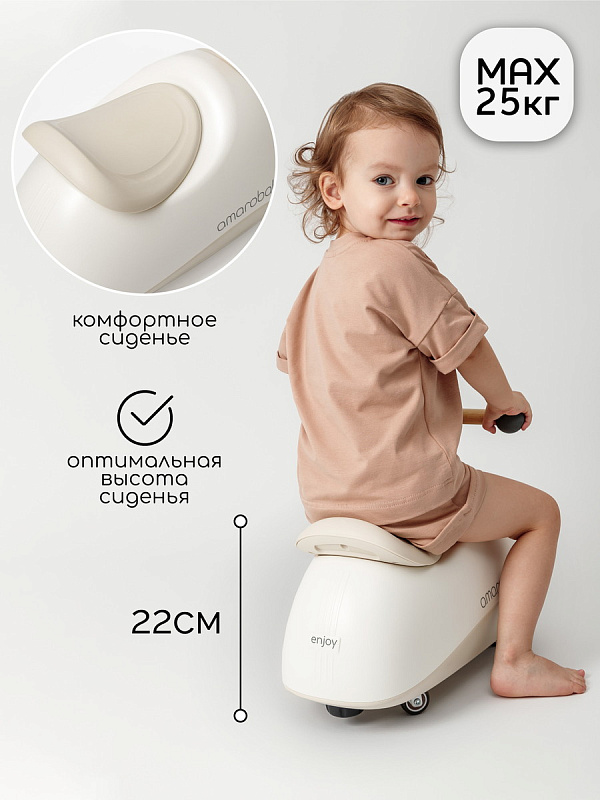Детская каталка-толокар Enjoy от Amarobaby — это прекрасное первое транспортное средство для вашего малыша! Благодаря широкому разнообразию расцветок вы сможете подобрать идеальный подарок на годик как для мальчика, так и для девочки. Лаконичный и стильный дизайн непременно порадует вас и вашего ребенка, а яркие цветные элементы сделают его заметным на любом фоне.