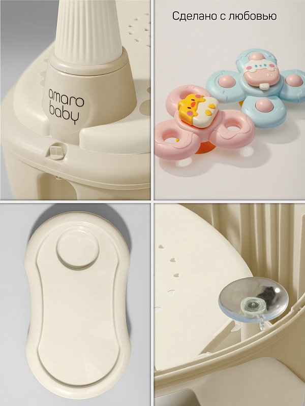 Толокар 2 в 1 AmaroBaby Swimmy-уникальная модель, которая включает в себя еще функцию детского сиденья для купания! Играйте и катайтесь, а когда придет время купаться, просто снимите верхнюю часть, и толокар превратится в удобное сиденье для купания. Сиденье для купания малыша подходит для использования в детских ванночках, в обычных ваннах и душевых кабинах. Стульчик для купания изготовлен из высококачественных материалов, что делает его прочным и устойчивым. Обеспечивает комфортное положение ребенка во время водных процедур, освобождая руки родителей. Многофункциональная детская машинка имеет четыре поворотных колеса на 360 градусов. Колеса прорезиненные, не будут царапать пол. В каталке есть место для хранения игрушек. Предусмотрены специальные стопперы от опрокидывания. В комплекте идут две игрушки, которые можно закрепить на столике. Толокар для малышей с функцией сиденья для купания – это умное решение для современных родителей. Он подарит ребенку часы веселья, поможет развить моторику и сделает купание более комфортным.
