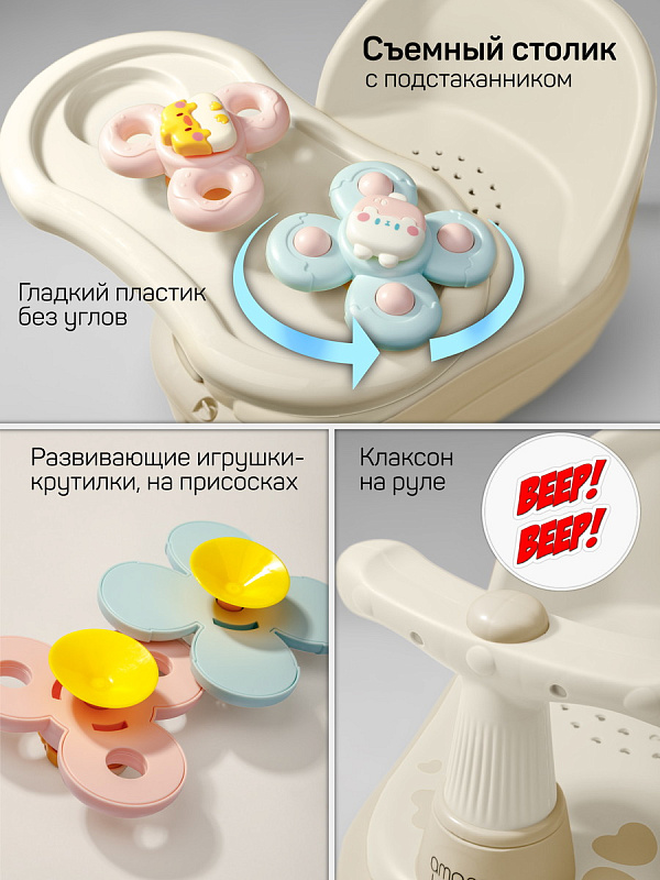 Толокар Amarobaby Swimmy 2 в 1 с сиденьем для купания бежевый