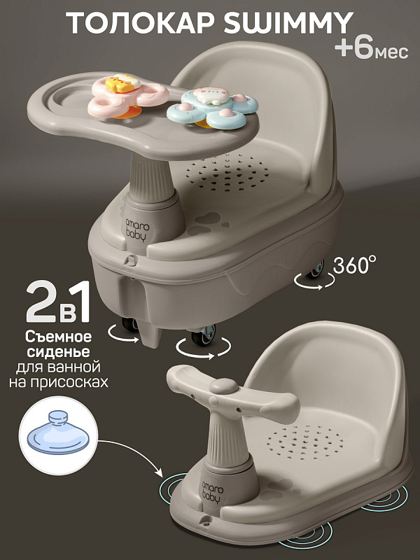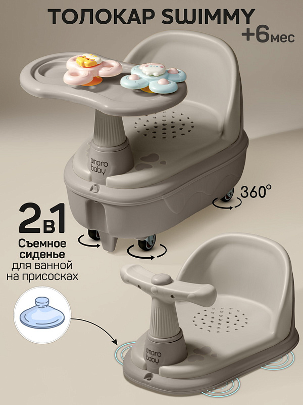Толокар Amarobaby Swimmy 2 в 1 с сиденьем для купания серый