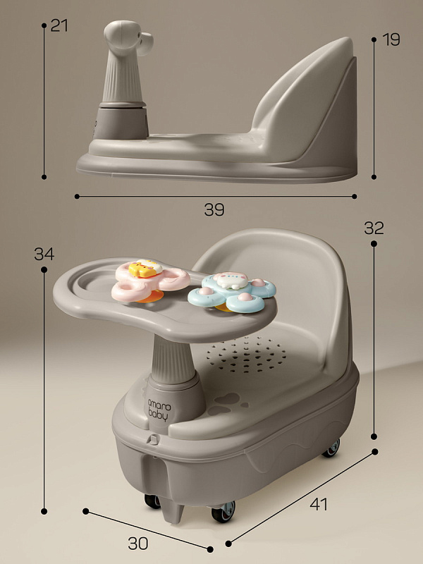 Толокар 2 в 1 AmaroBaby Swimmy-уникальная модель, которая включает в себя еще функцию детского сиденья для купания! Играйте и катайтесь, а когда придет время купаться, просто снимите верхнюю часть, и толокар превратится в удобное сиденье для купания. Сиденье для купания малыша подходит для использования в детских ванночках, в обычных ваннах и душевых кабинах. Стульчик для купания изготовлен из высококачественных материалов, что делает его прочным и устойчивым. Обеспечивает комфортное положение ребенка во время водных процедур, освобождая руки родителей. Многофункциональная детская машинка имеет четыре поворотных колеса на 360 градусов. Колеса прорезиненные, не будут царапать пол. В каталке есть место для хранения игрушек. Предусмотрены специальные стопперы от опрокидывания. В комплекте идут две игрушки, которые можно закрепить на столике. Толокар для малышей с функцией сиденья для купания – это умное решение для современных родителей. Он подарит ребенку часы веселья, поможет развить моторику и сделает купание более комфортным.