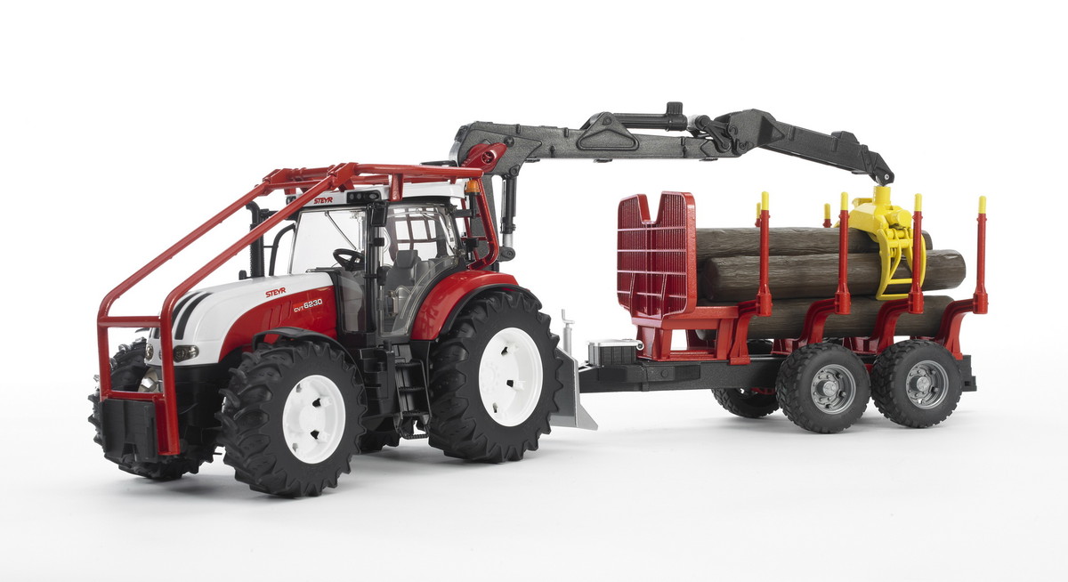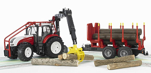 Трактор Bruder Steyr CVT 6230 лесной с манипулятором и прицепом с брёвнами
