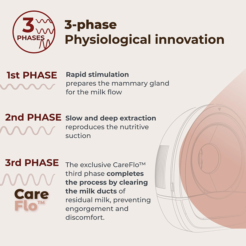 Cочетает в себе удобство портативного молокоотсоса и эффективность 3-фазной технологии.