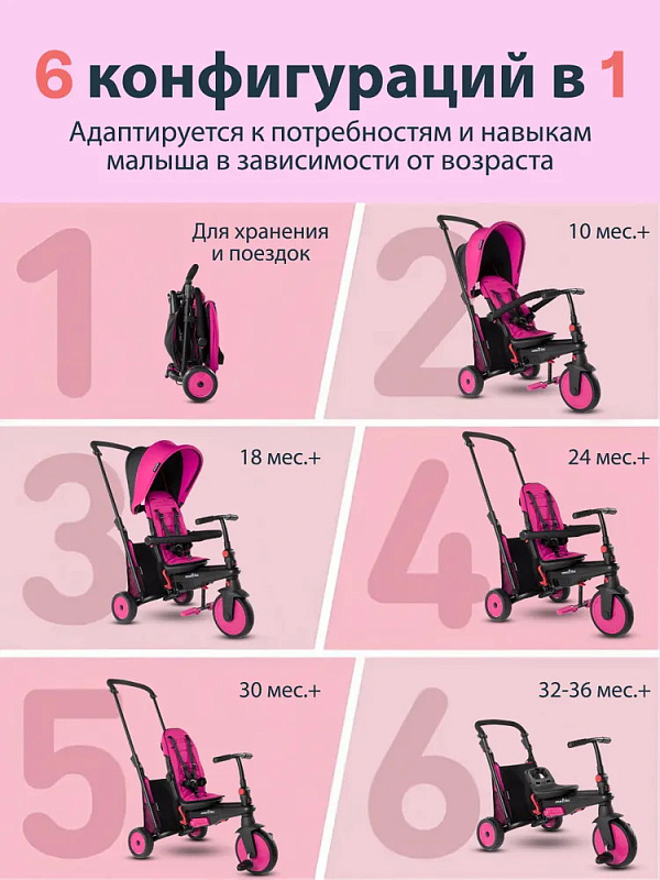 Трехколесный складной велосипед Smartrike STR3 Pink