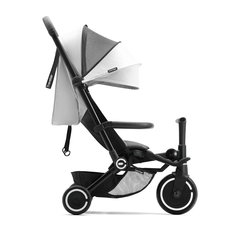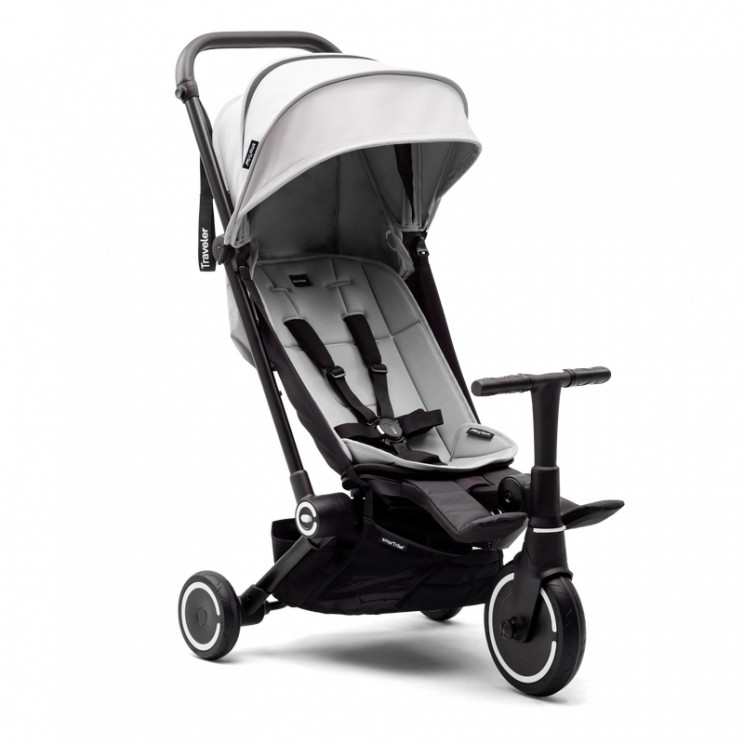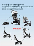 Traveler сочетает в себе все функции обычной прогулочной коляски и особенности трехколесного велосипеда. А когда приходит время возвращаться домой, механизм быстрого складывания делает хранение Traveler простым и удобным.