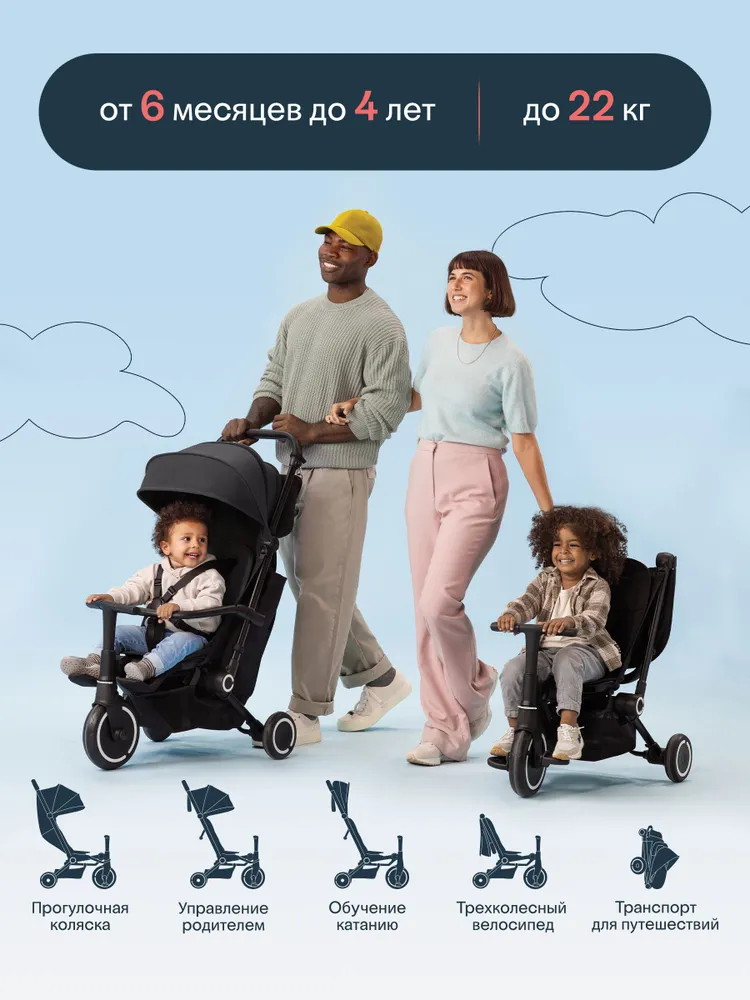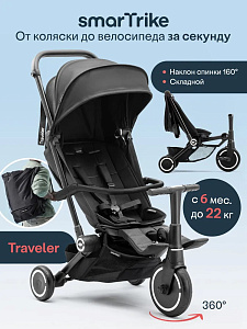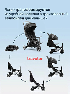 Первый в мире велосипед-коляска для детей Traveler, легко трансформируется из удобной коляски в трехколесный велосипед для малышей. Traveler растет вместе с ребёнком с 6 месяцев до 4 лет.