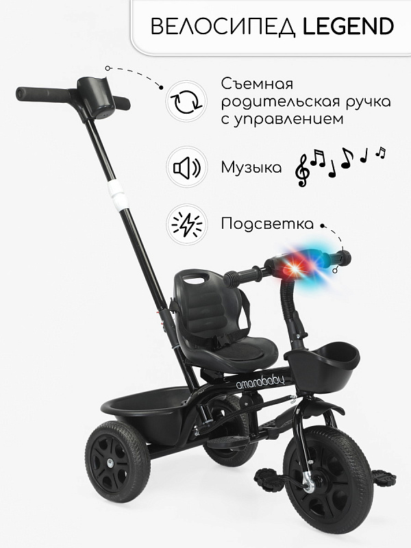 Трехколесный велосипед AmaroBaby Legend с ручкой черный